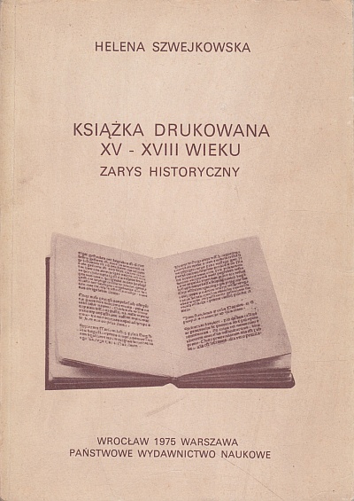 Książka drukowana XV-XVIII wieku : zarys historyczny / Helena Szwejkowska. - Wydanie drugie przejrzane i uzupełnione. - Wrocław : Państwowe Wydawnictwo Naukowe, 1975. - 347, [1] strona : ilustracje ; 25 cm.