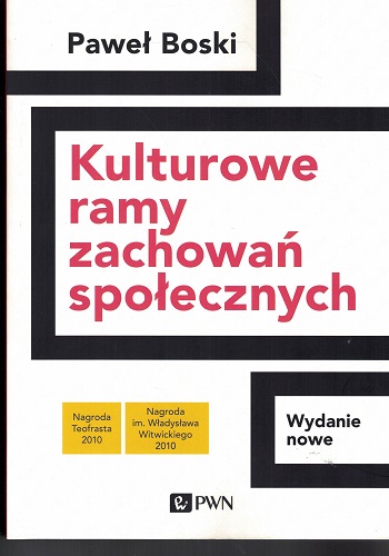 Kulturowe ramy zachowań społecznych : podręcznik autorski / Paweł Boski. - Wydanie 2 poprawione, 1 dodruk. - Warszawa : PWN, 2022 - XXVIII, 910, [1] strona : fotografie, ilustracje, mapy, portret, wykresy ; 29 cm.